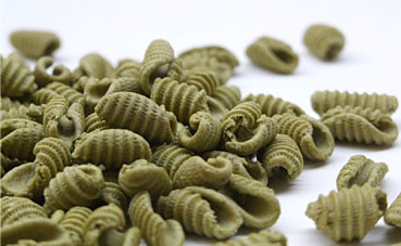 A special Carlofortean gnocchi (traditional pasta) made with spinach. It is short, shaped like a small conch shell, with a ribbed, textured surface.