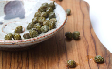 Capers in Vinegar from a small island off Sicily called Pantelleria. They are less salty and softer than those in salt and can be used similarly in salads, pasta and pizza toppings, and stirred into mayonnaise to serve with fried fish.