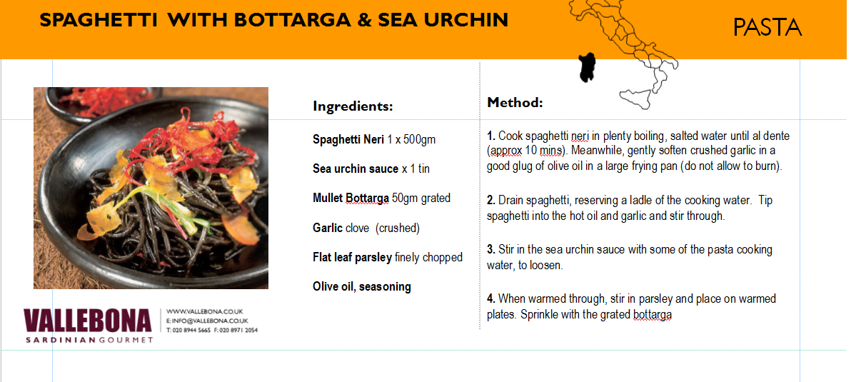 Made with the black ink from a squid this pasta looks beautiful with a tomato prawn and chilli dish. The bright red with the glossy black is enough to make your mouth water. Particularly suited to seafood dishes this pasta is very high quality and strikingly different.