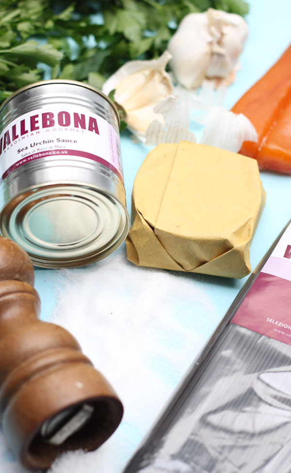 - Spaghetti with bottarga and sea urchin roe